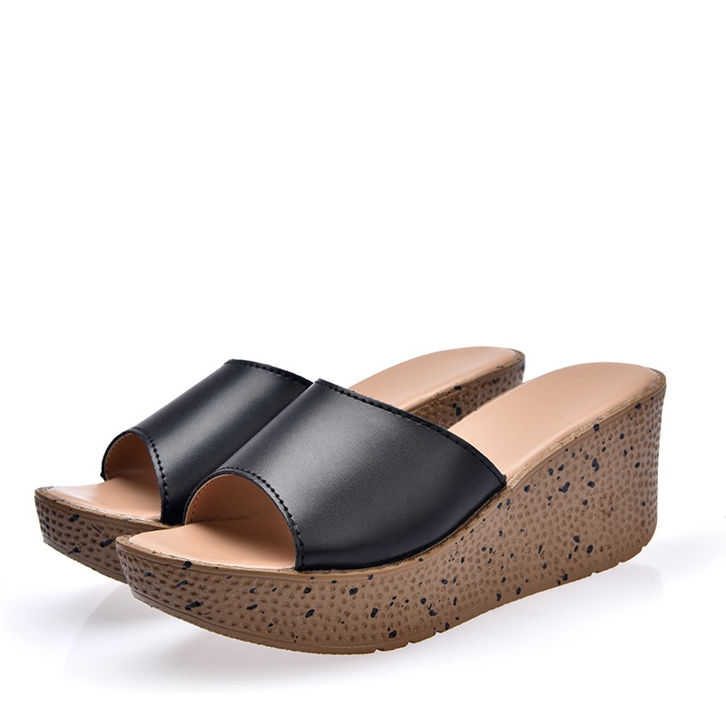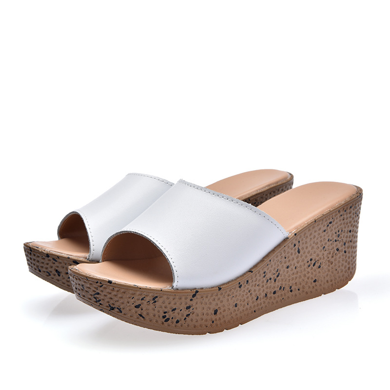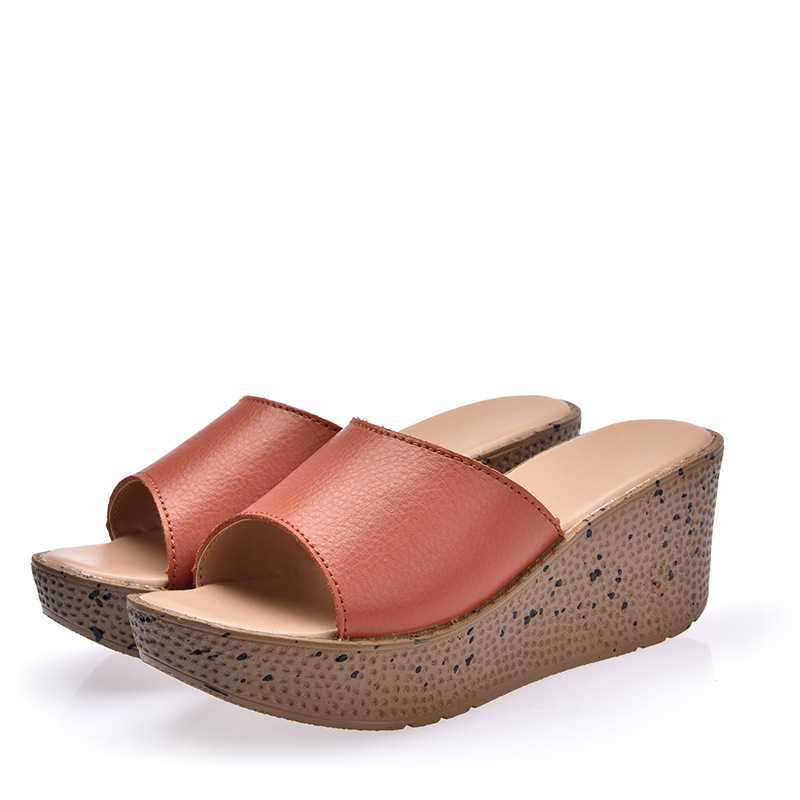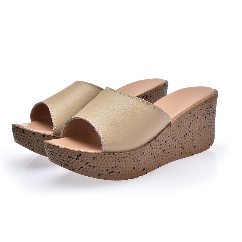 Elevate your casual look with our Solid Genuine Leather Open Toe Platform San